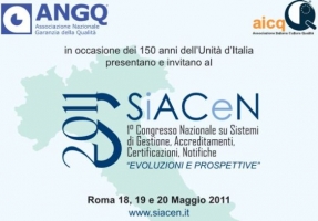 L’Associazione Nazionale Garanzia della Qualità e l’Associazione Italiana Cultura della Qualità, in occasione dei 150 anni dell’Unità d’ Italia hanno organizzato a Roma dal 18 al 20 maggio SiACeN 2011 I° Congresso Nazionale su Sistemi di Gestione, Accreditamenti, Certificazioni, Notifiche  “Evoluzioni e Prospettive”.