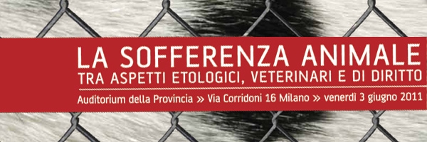 Venerdì 3 giugno '11 , presso l'Auditorium della Provincia in Via Corridoni si svolgerà il Convegno “La sofferenza animale tra aspetti etologici, veterinari e di diritto”, organizzato dalla LAV con il patrocinio del Ministero della Salute, della Provincia di Milano e della Federazione Nazionale degli Ordini Veterinari Italiani.