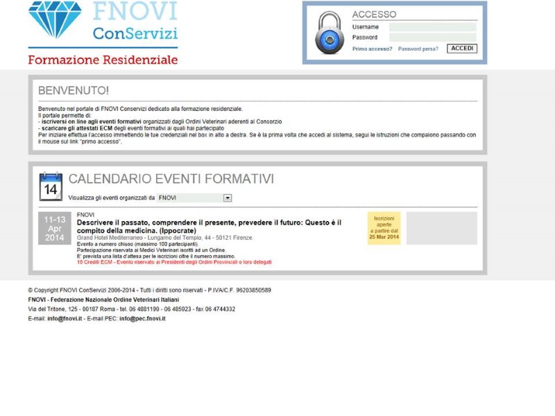 Basterà accedere alla piattaforma di gestione degli eventi residenziali ECM del Consorzio Fnovi ConServizi ed effettuare l’accesso all’area riservata.