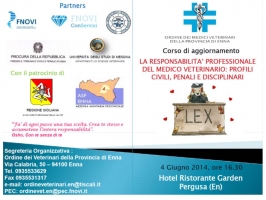 In occasione della visita del Presidente FNOVI, Dr. Gaetano Penocchio, l’Ordine dei Medici Veterinari della Provincia di Enna, ha organizzato per il prossimo 4 giugno un momento di confronto tra gli iscritti e le istituzioni che disciplinano e governano la responsabilità professionale medico-veterinaria.