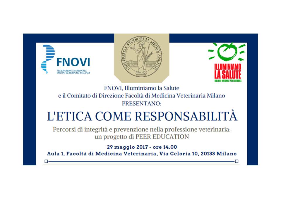 La FNOVI, in collaborazione con il progetto Illuminiamo la Salute e con la Conferenza dei Presidi delle Facoltà di Medicina Veterinaria, ha avviato un progetto con gli studenti delle Facoltà di Medicina Veterinaria italiane per promuovere l’etica e l’integrità nella professione, la prevenzione della corruzione e delle infiltrazioni mafiose.