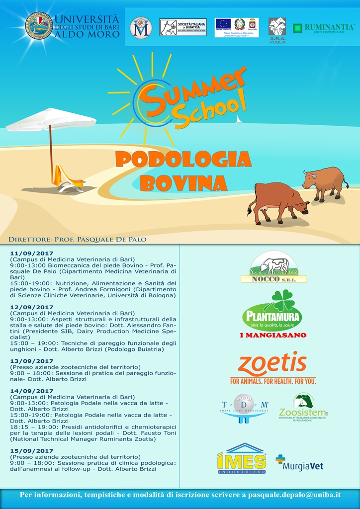 Presso il Dipartimento di Medicina Veterinaria dell’Università degli Studi di Bari sarà attivata la Summer School di Podologia Bovina.