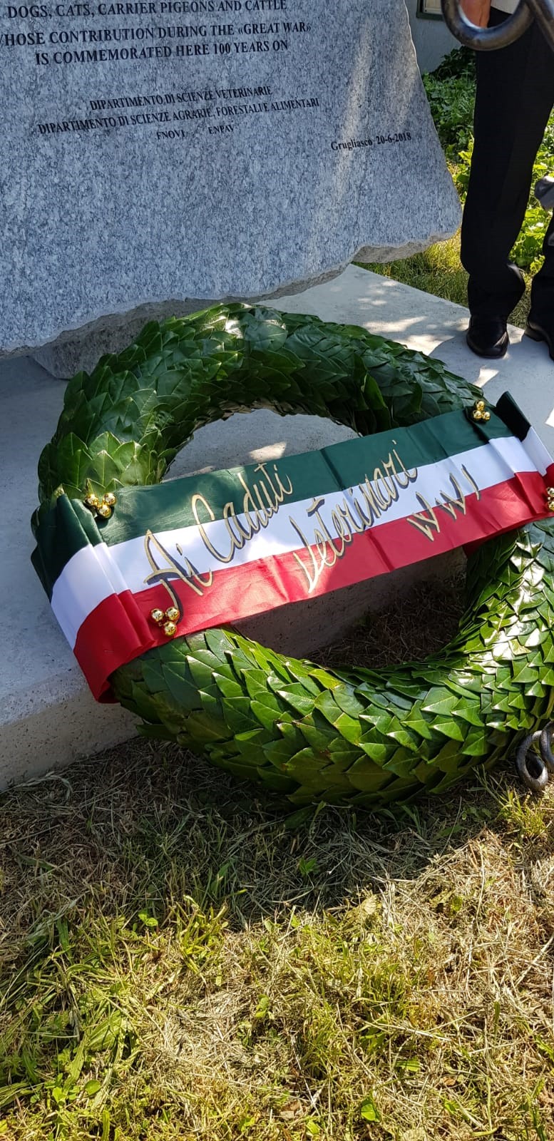 Il 20 giugno scorso, l’inaugurazione della mostra itinerante "La Medicina Veterinaria nella Prima Guerra Mondiale" è stata preceduta dallo scoprimento di un memoriale a ricordo dei Medici Veterinari, degli studenti di Veterinaria e degli animali ( cavalli, cani, muli, buoi, asini, colombi viaggiatori) che diedero il loro contributo sui fronti europei durante la Grande Guerra.