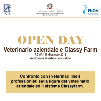 Come preannunciato in occasione dei lavori del Consiglio Nazionale FNOVI, il Ministero della Salute – ed in particolare la Direzione generale della sanità animale e dei farmaci veterinari – è impegnata nell’organizzazione, in collaborazione con la FNOVI e con l’Istituto Zooprofilattico Sperimentale Lombardia ed Emilia Romagna, di un Open Day sulla figura del Veterinario aziendale e sul sistema Classy Farm, dedicato ai veterinari liberi professionisti.