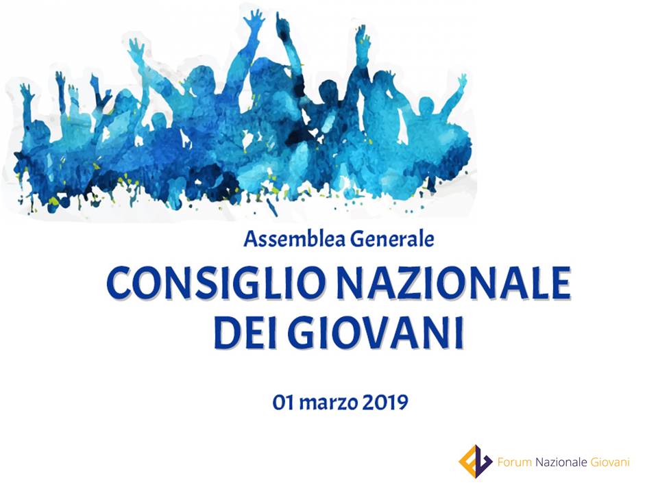 Il Consiglio Nazionale dei Giovani risulterà composto dalle associazioni giovanili maggiormente rappresentative e dai soggetti indicati nel proprio Statuto, per la cui sottoscrizione sono stati convocati oggi 1 marzo 2019 i lavori della prima Assemblea Generale.