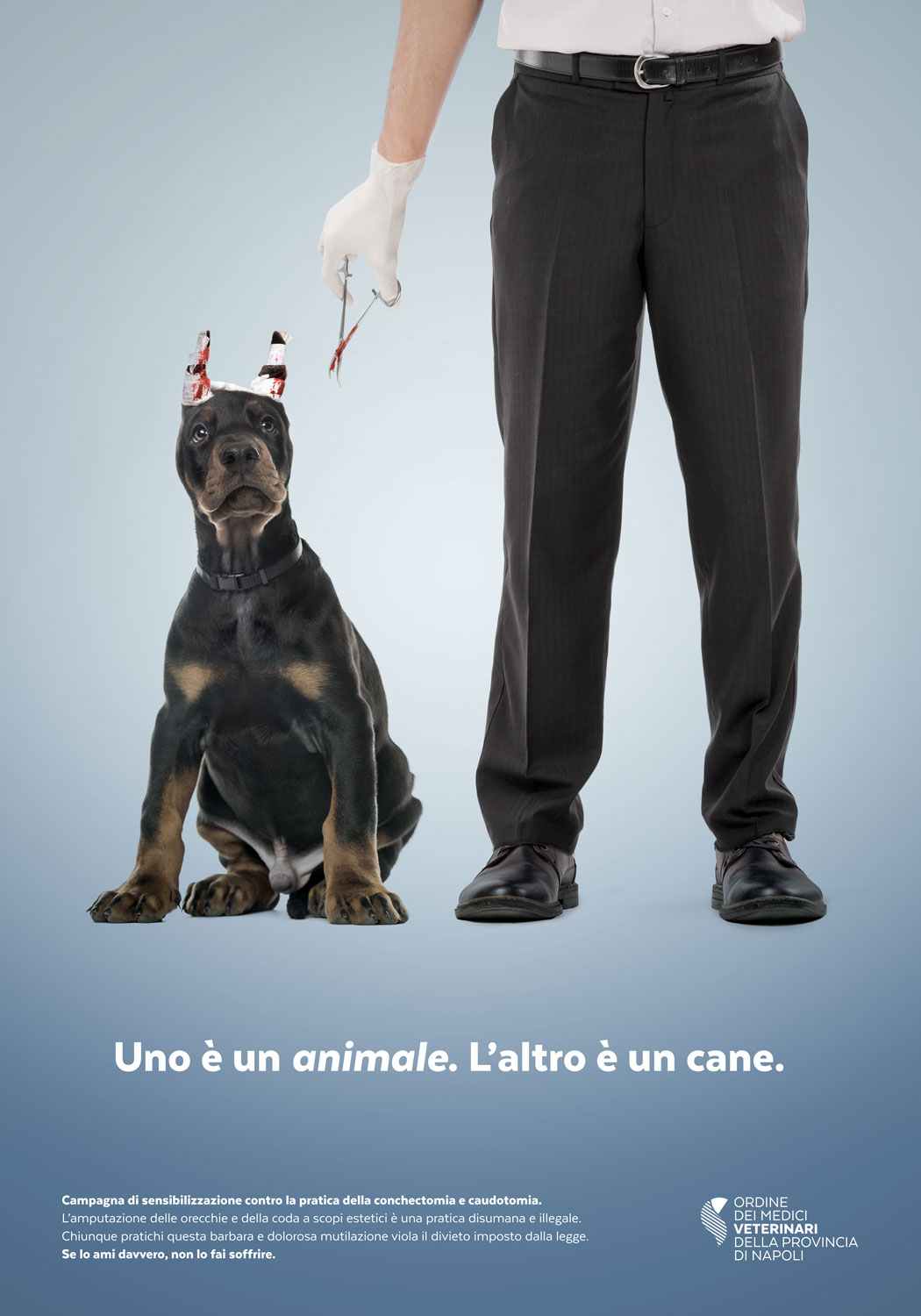 Il Consiglio dell'Ordine dei Medici Veterinari di Napoli, ha promosso una campagna di sensibilizzazione rivolta ai cittadini contro il taglio della coda e delle orecchie nei cani per fini esclusivamente estetici. Ne ha parlato il Tesoriere dell’Ordine nel corso di una intervista rilasciata in occasione della tre giorni dei lavori dell’ultimo Consiglio Nazionale (Sorrento (NA) dal 5 al 7 aprile u.s.) riferendo che lo scopo era quello di far conoscere alla ‘public opinion’ l'impegno dei medici veterinari, partendo da un settore, quello degli animali da compagnia, in cui il medico veterinario rappresenta un punto di riferimento per la cura ed il benessere. E', quindi, questa iniziativa un'opportunità a cui far seguire altre, aventi lo scopo di far conoscere il ruolo del medico veterinario nei diversi ambiti: primo fra tutti la sanità di prevenzione.