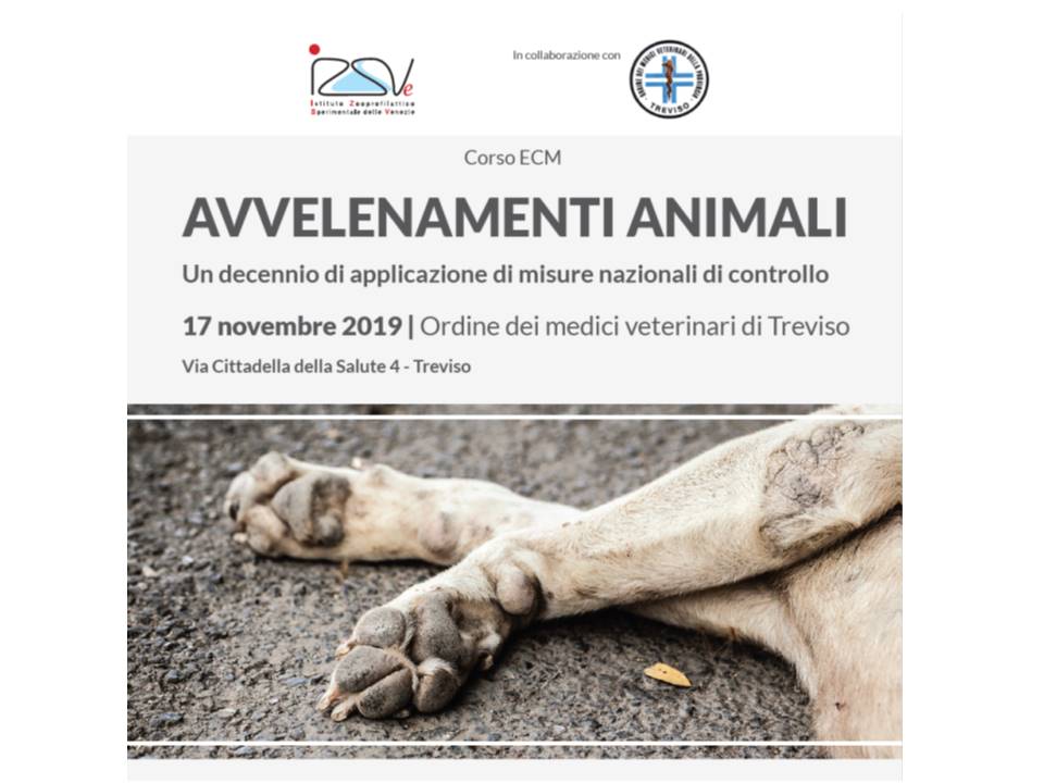 Il prossimo 17 novembre 2019 si terrà il corso ECM «Avvelenamenti animali. Un decennio di applicazione di misure nazionali di controllo» organizzato dall’IZSVe in collaborazione e dall’OMV di Treviso.