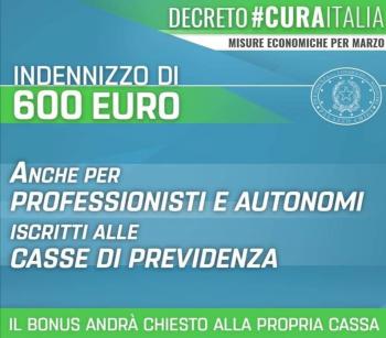 ANCHE I PROFESSIONISTI ISCRITTI ALLE CASSE DI PREVIDENZA PRIVATE AVRANNO UN INDENNIZZO DI 600 EURO PER IL MESE DI MARZO