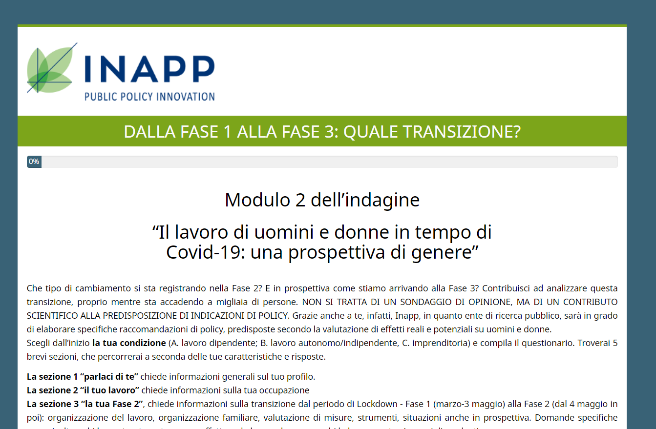 Scegli dall’inizio la tua condizione (A. lavoro dipendente; B. lavoro autonomo/indipendente, C. imprenditoria) e compila il questionario.