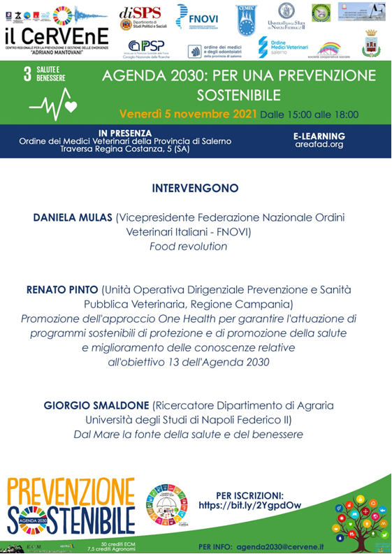 L’Ordine dei Medici Veterinari di Salerno, venerdì 5 novembre 2021, ha ospitato il terzo degli incontri dedicati all’Agenda 2030: per una prevenzione sostenibile, dedicato all’Obiettivo 3 – Salute e benessere: assicurare la salute e il benessere per tutti e tutte le età.