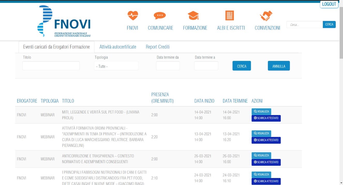 Disponibile la nuova funzione di scaricamento degli attestati di partecipazione per i Meeting FNOVI.