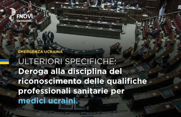 ULTERIORI SPECIFICHE: Deroga alla disciplina del riconoscimento delle qualifiche professionali sanitarie per medici ucraini
