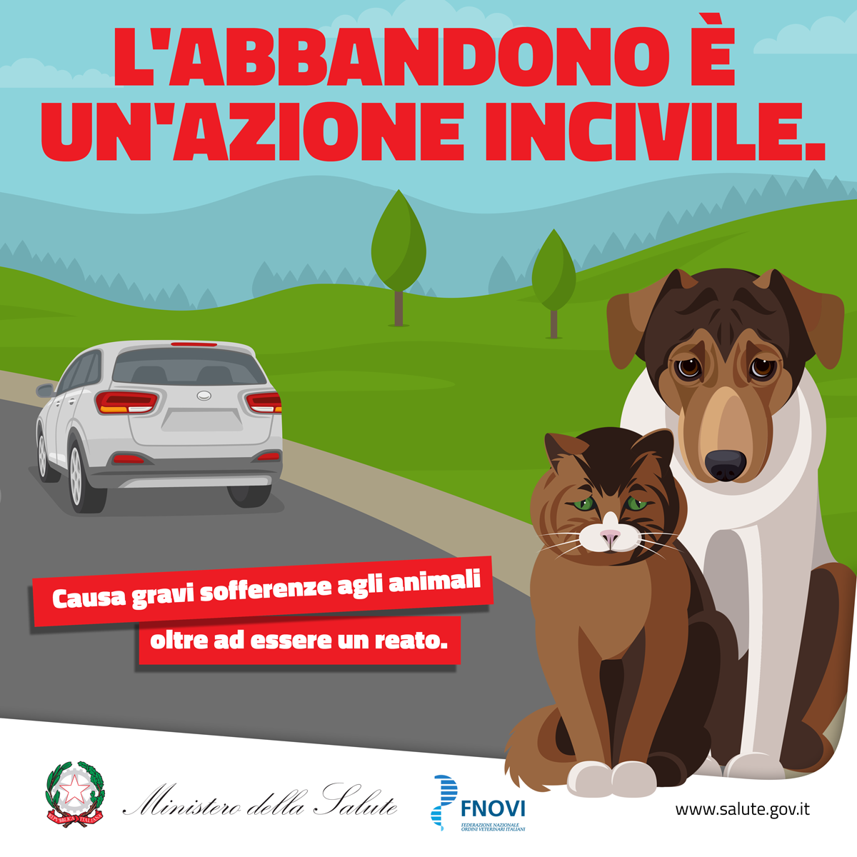 Sul suo portale il Ministero della Salute, informa che in collaborazione con la Federazione Nazionale Ordini Veterinari Italiani (FNOVI), ha realizzato una campagna di comunicazione sull'abbandono degli animali, con l’obiettivo di sensibilizzare la popolazione sul possesso responsabile degli animali d’affezione e focalizzare l’attenzione soprattutto al contrasto del fenomeno dell’abbandono.
