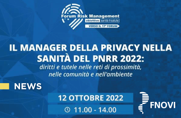 FNOVI AL WEBINAR “IL MANAGER DELLA PRIVACY NELLA SANITÀ DEL PNRR 2022: DIRITTI E TUTELE NELLE RETI DI PROSSIMITÀ, NELLA COMUNITÀ E NELL’AMBIENTE”