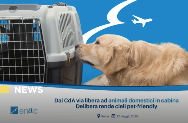 La Federazione Nazionale Ordini Veterinari Italiani (FNOVI) esprime apprezzamento per l'approvazione della delibera di ENAC che introduce modifiche volte a consentire il trasporto di animali domestici in cabina, in linea con le indicazioni del Ministero delle Infrastrutture e dei Trasporti.