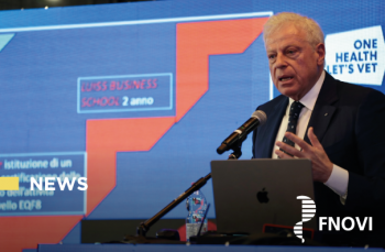 Gaetano Penocchio ha quindi ripercorso le caratteristiche del progetto formativo proposto nel 2025 - concepito con un approccio "One Health" che integra innovazione, tecnologia, business e management - che è il risultato della collaborazione tra FNOVI, LUISS e MSD. In tema di sanità pubblica il Presidente FNOVI ha sottolineato tra l'altro come vadano rese efficaci le azioni di prevenzione: i dipartimenti di prevenzione che certificano e sanzionano non servono più, servono invece competenze specialistiche, centri di referenza nei quali convergano competenze diverse, sinergie tra autorità competente e medici veterinari privati. Nel settore degli animali da compagnia ha quindi approcciato il tema delle corporate, del trust, dei prezzi in crescita, dei primi segnali sindacali. Ha bocciata la nascita del veterinario di base per fasce fragili e il ricorso alle strutture veterinarie pubbliche degli IZS, quali strutture di prossimità per una prima assistenza o per la degenza.