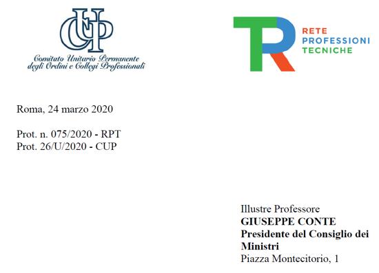 DECRETO CURA ITALIA: CUP E RPT SCRIVONO A CONTE
