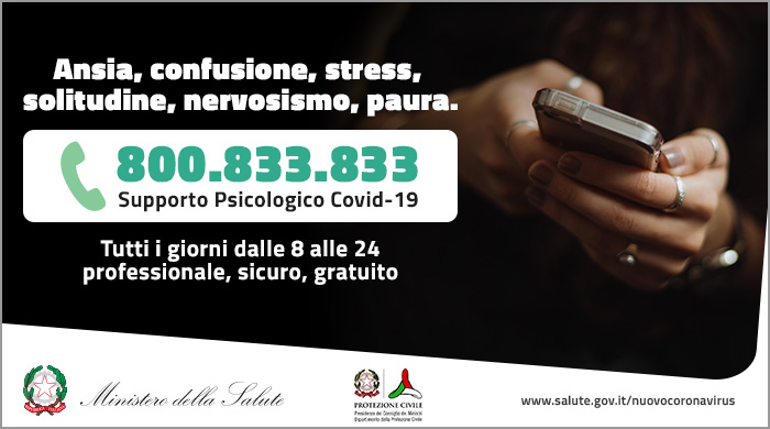 COVID-19, NASCE 800.833.833 - NUMERO VERDE DI SUPPORTO PSICOLOGICO