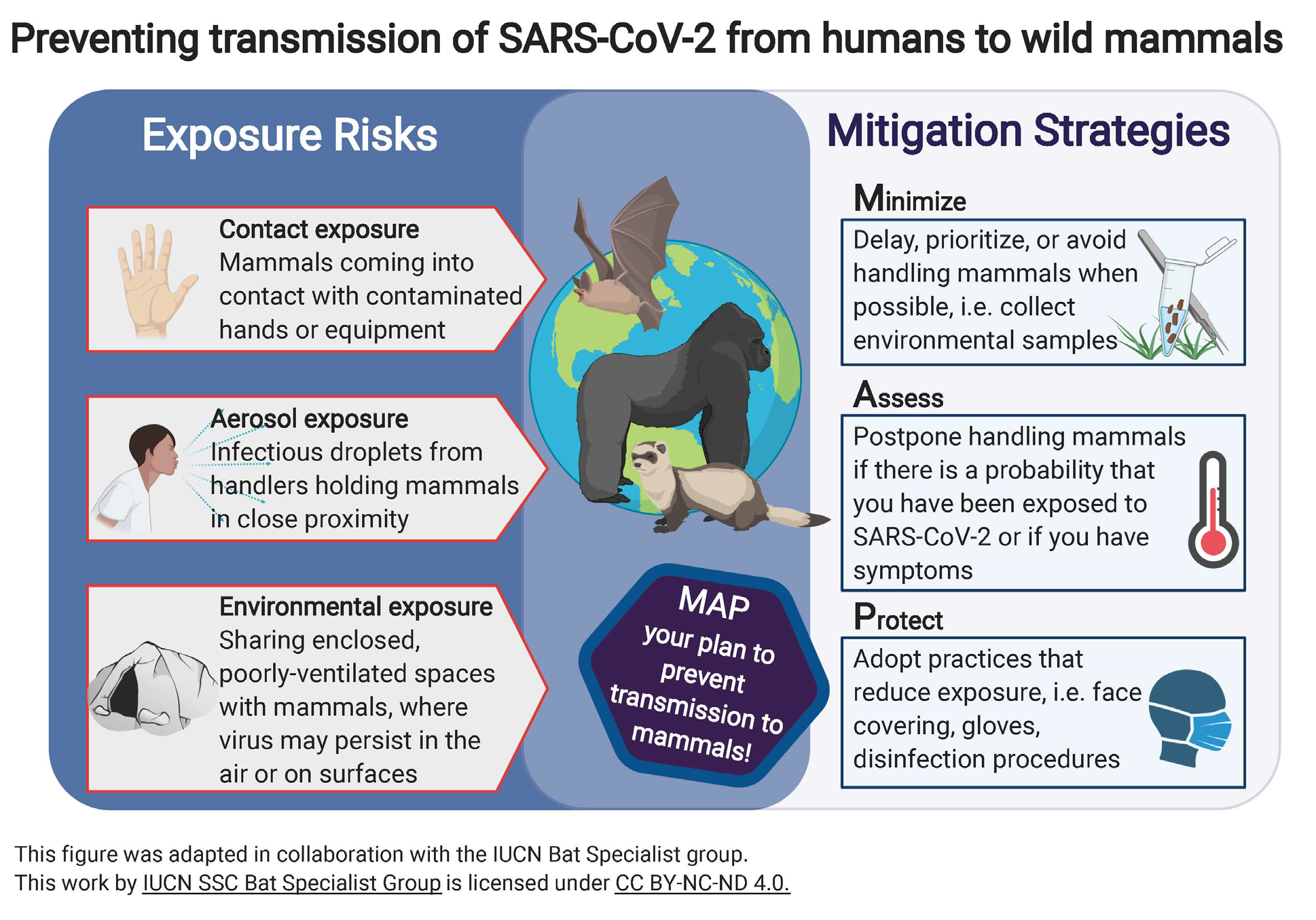 Il virus SARS-CoV-2, causa del COVID-19, è stato individuato come agente patogeno per l'uomo nel 2019. Mentre si pensa che abbia un’origine zoonotica, il serbatoio originale della fauna selvatica e gli ospiti intermedi non sono ancora stati identificati. Le analisi filogenetiche suggeriscono che il virus progenitore sia legato ai beta-coronavirus precedentemente identificati nei pipistrelli. In questo momento, SARS-CoV-2 dovrebbe essere considerato un agente patogeno umano con le persone che agiscono come serbatoio e sostengono la trasmissione. C'è la possibilità che la SARS-CoV-2 diventi endemica nella popolazione umana e quindi presenta il rischio di una potenziale zoonosi inversa per la fauna selvatica come nel caso di malattie infettive come tubercolosi e influenza.